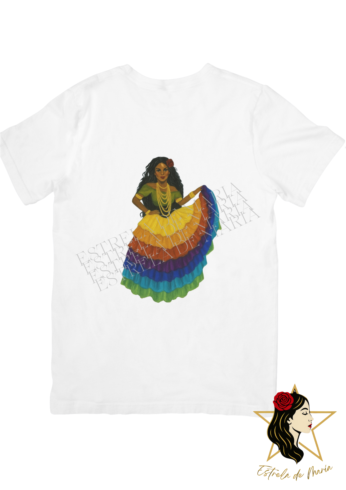 Perfeita para ocasiões casuais, festas temáticas ou para expressar sua conexão cultural. Recomendamos lavar à mão para preservar a estampa e o branco vibrante por mais tempo.